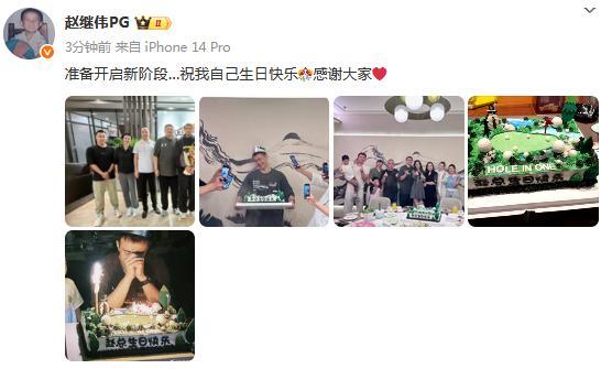 不久前,赵继伟更新社媒发文:准备开启新阶段…祝我自己生日快乐,感谢大家。